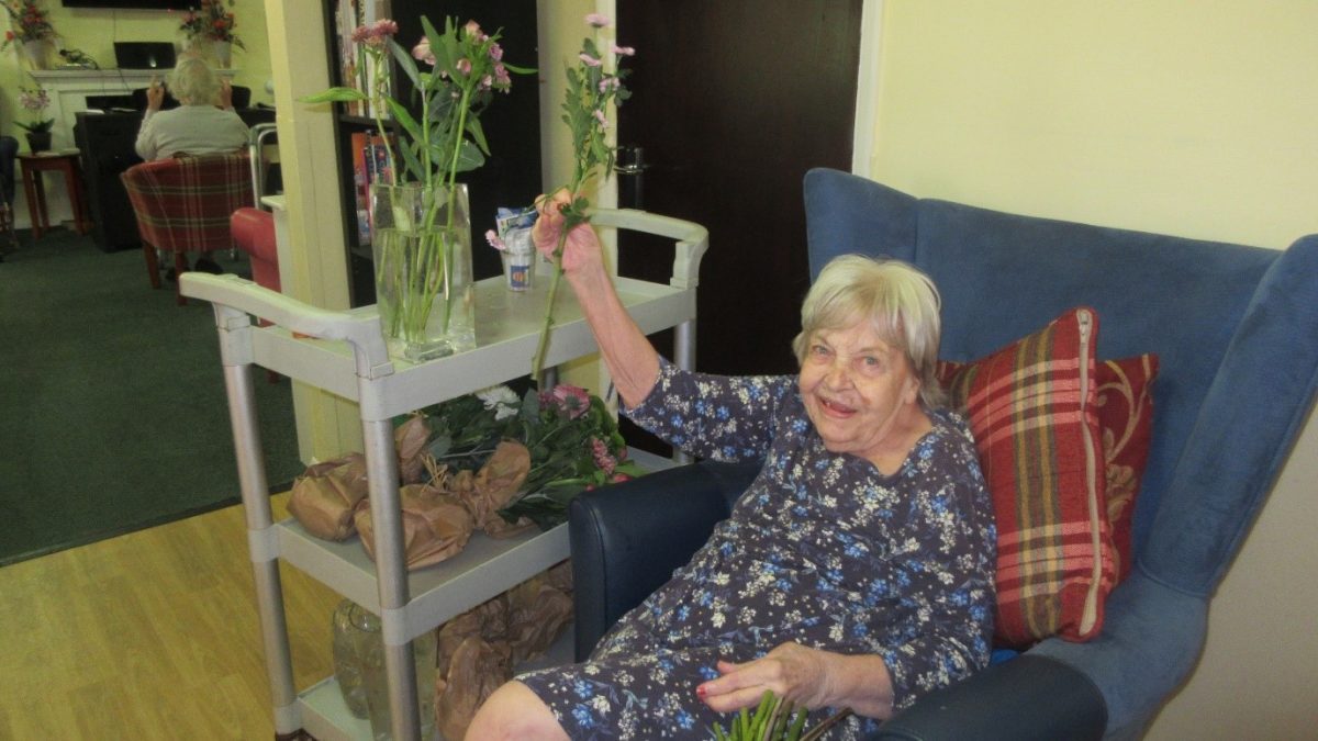 Joan enjoyed arranging a vase herself.