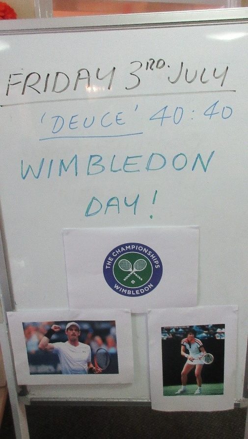 On Friday 3rd. July we started the day with our chair-based exercises, ahead of a day devoted to all things Wimbledon and tennis. This would have been half way through the championship proceedings under normal circumstances.