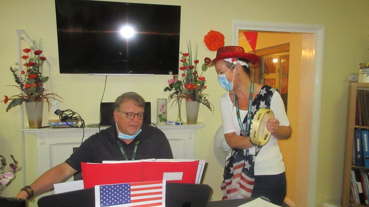 On Saturday 4th. July we celebrated American Independence Day with an American word search, quizzes and sing-along. We also enjoyed a balloon bounce and skittles. We had American style lunch of hotdogs and New York cheese cake. As well as this Louis very kindly played the piano for us, that helped make our American sing-a-long extra special!