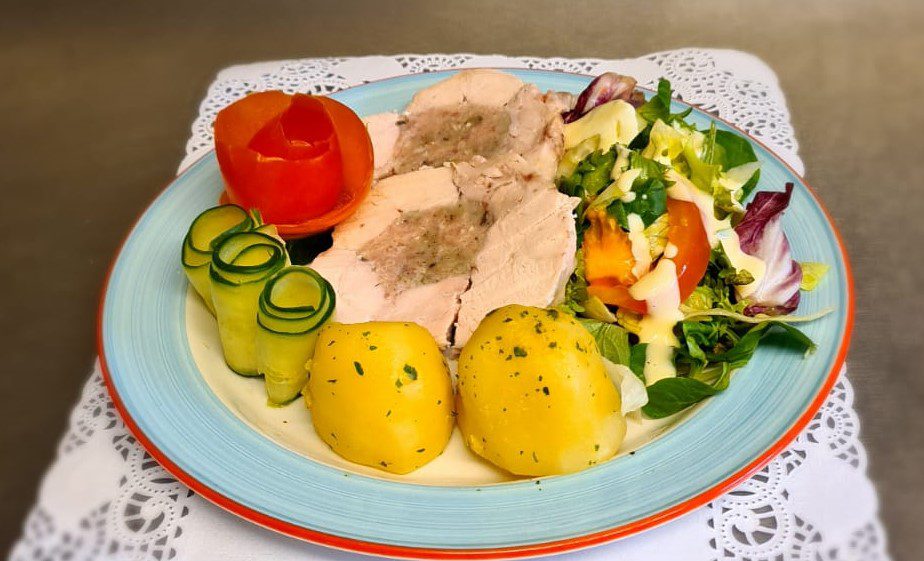 Our lovely Chef Nadia made this delicious Dish of the Day at Hill Brow this week. It is cold chicken, salad and potatoes. Perfect for a summers days.