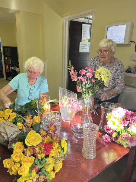 On Thursday morning, the residents did exercises with the physiotherapist and also helped with the flower arrangements.