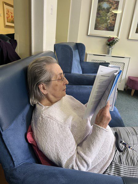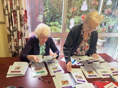 Residents helping out in the kitchen with the menu.