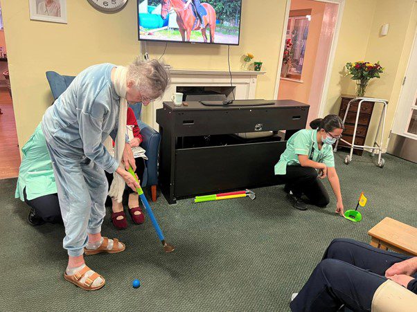 The residents enjoyed playing mini golf.