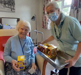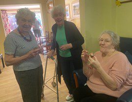 On Thursday, we started the day with chair yoga, daily exercises and a look at the daily paper.  Some of the residents enjoyed flower arranging to decorate the home.  Eyes down for bingo with Easter treats and the drinks trolley.