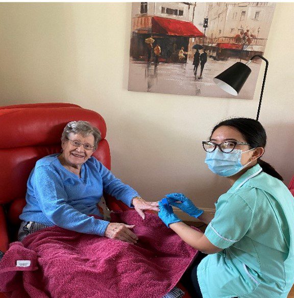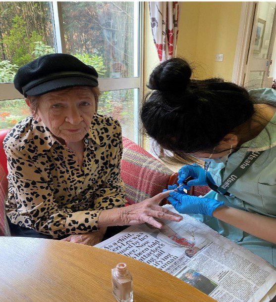 On Monday we started our day with News of the day and morning manicures for some of the residents.