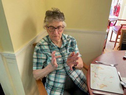 Our lovely resident remembering how to do cat’s cradle!