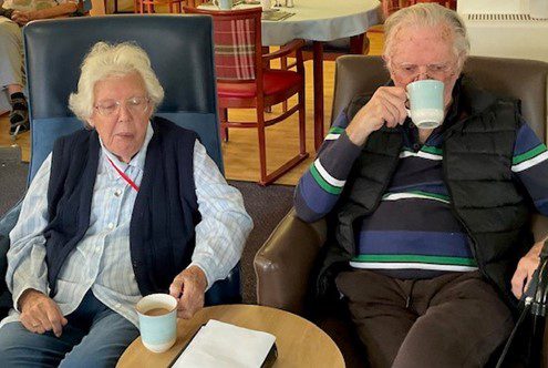 Friends all enjoying a coffee at Redfield’s Garden centre.