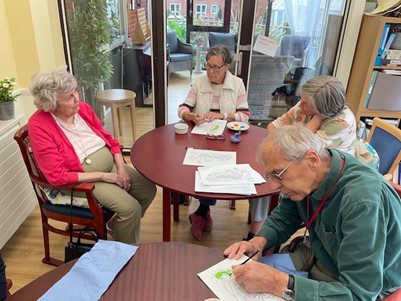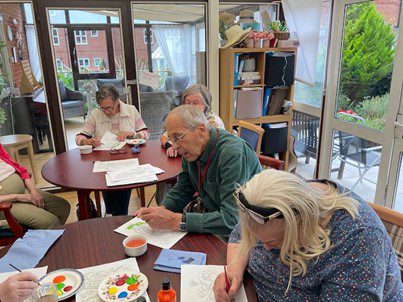 Arts & crafts is a very social time for us all, we all get together and have a good natter while being creative, with friends.
