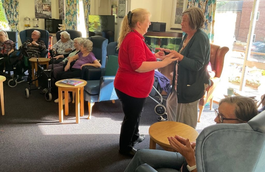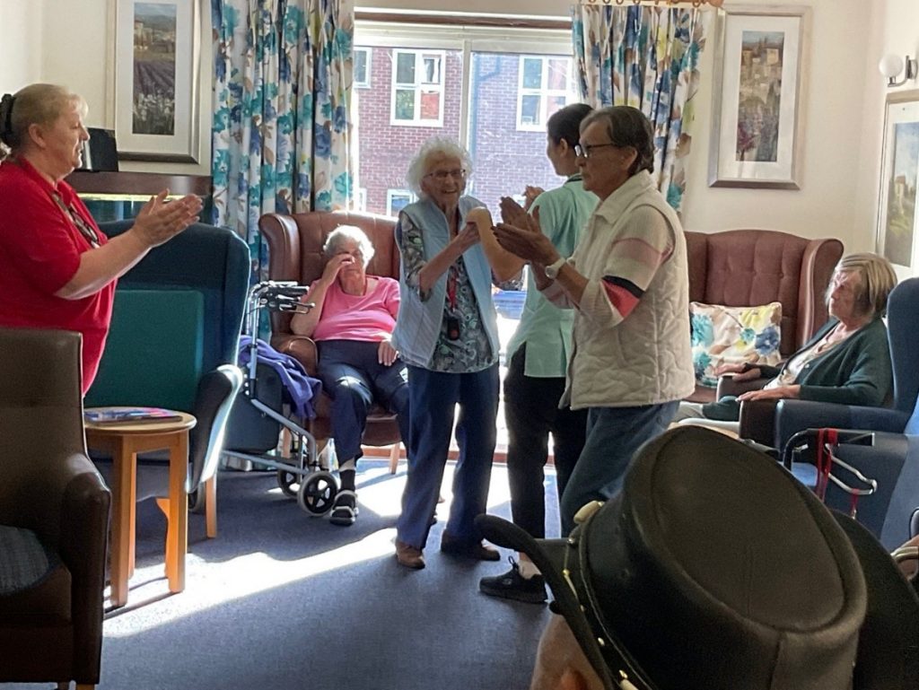 Our resident did not feel up to going out for Lunch, lunch and his friends came to him, what a lovely surprise it was for him.