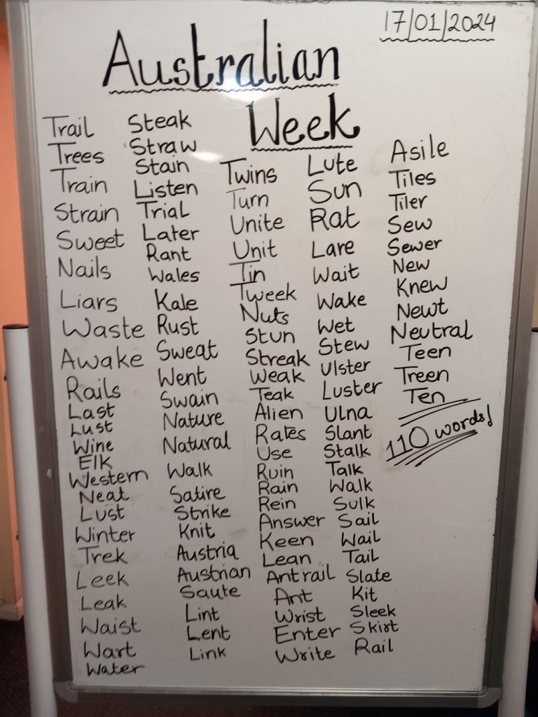 Our residents engaged in an ‘Australian Week’ wordsearch, stimulating their minds and successfully finding 110 words!